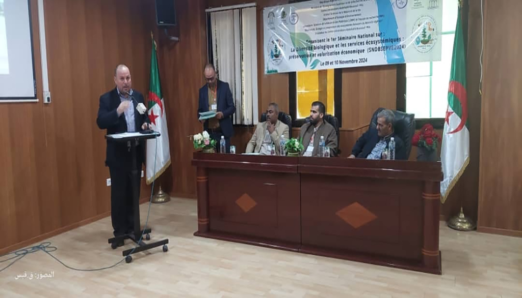 ملتقى وطنيا حضوري وعن بعد بمشاركة أساتذة من المركز الجامعي ميلة ومختلف جامعات الوطن التي بلغت حوالي 42 جامعة و90 مداخلة مختارة من ضمن 270 حاولت المشاركة حول: التنوع البيولوجي –خدمات-النظم البيئية – الحماية –التثمين الاقتصادي. يومي 09-10 نوفمبر2024 بقاعة السمعي البصري.